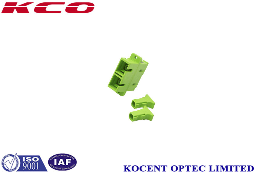 Adaptador óptico de fibra verde SC/APC con brida, con tapa de polvo, dúplex